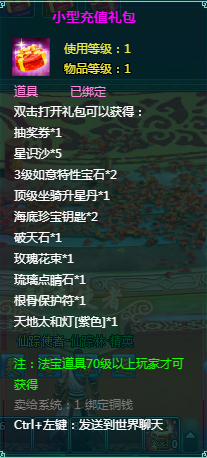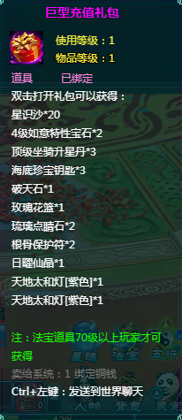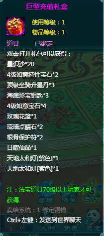 2、充值礼包中的法宝道具均为70级以上玩家才能获得。