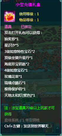2、充值礼盒中的法宝道具均为70级以上玩家才能获得。