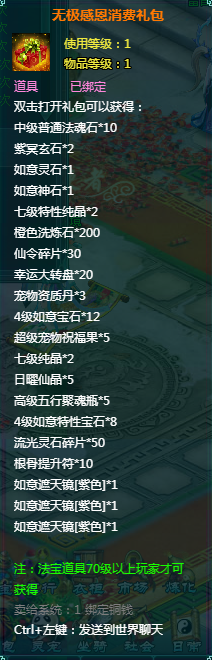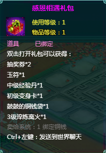 2、感恩相遇礼包中的物品均为绑定道具,不可交易。