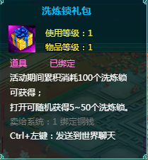每累计消耗100个洗炼锁 可返还1个洗炼锁礼包