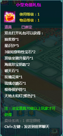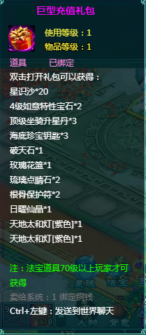 2、充值礼包中的法宝道具均为70级以上玩家才能获得。
