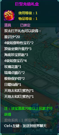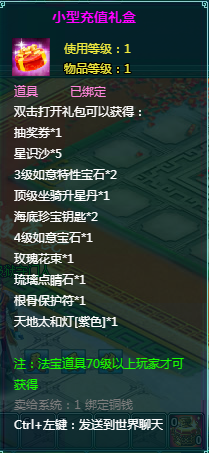 2、充值礼盒中的法宝道具均为70级以上玩家才能获得。