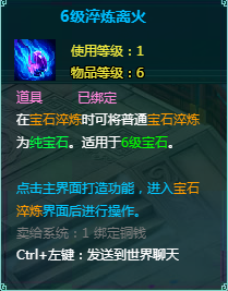 成功淬炼1颗6级宝石,可额外获得:5级淬炼离火*1