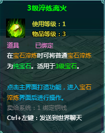成功淬炼1颗7级宝石,可额外获得:6级淬炼离火*1