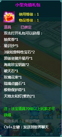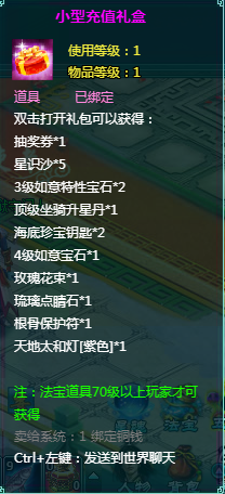2、充值礼盒中的法宝道具均为70级以上玩家才能获得。