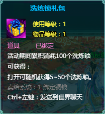 每累计消耗100个洗炼锁 可返还1个洗炼锁礼包