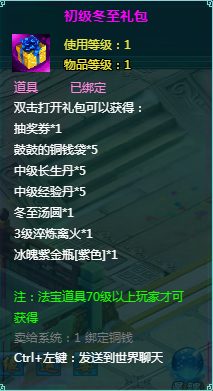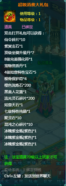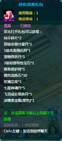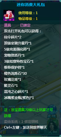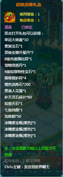 1、消费礼包中的法宝道具等级70级以上玩家才可获得。