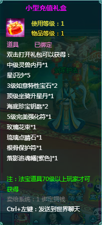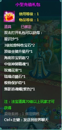 2、充值礼包中的法宝道具均为70级以上玩家才能获得。