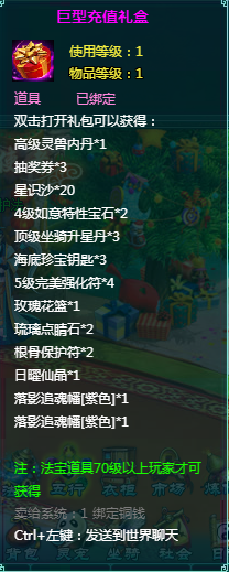 2、充值礼盒中的法宝道具均为70级以上玩家才能获得。