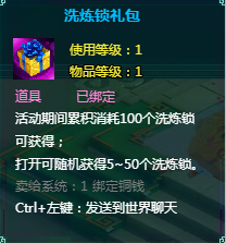 每累计消耗100个洗炼锁 可返还1个洗炼锁礼包