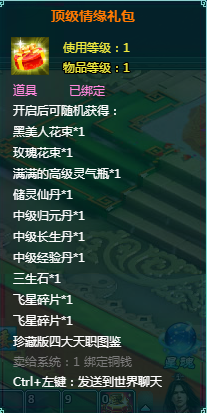 开启顶级情缘礼盒将有机会获得绝版四大职业卡通图鉴。