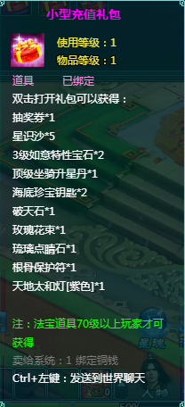 2、充值礼包中的法宝道具均为70级以上玩家才能获得。