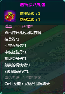 2、温情腊八礼包中的物品均为绑定道具,不可交易。