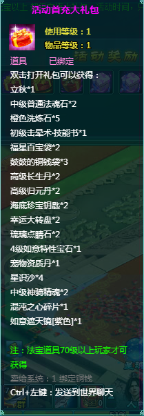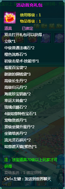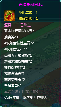 1、以上礼包中的物品除了宠物蛋外、其他全为绑定不可交易。