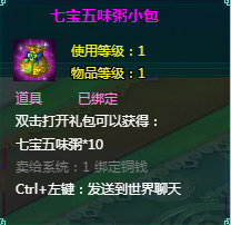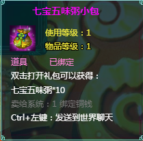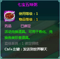 坐骑培养礼包:打开获得坐骑培养丹*3,有概率获得2~5个七宝五味粥