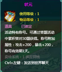 累积答对30题,可获得:状元称号*1