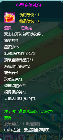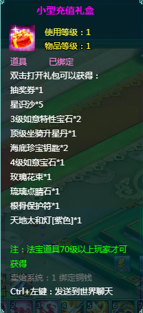 2、充值礼盒中的法宝道具均为70级以上玩家才能获得。