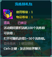 每累计消耗100个洗炼锁 可返还1个洗炼锁礼包
