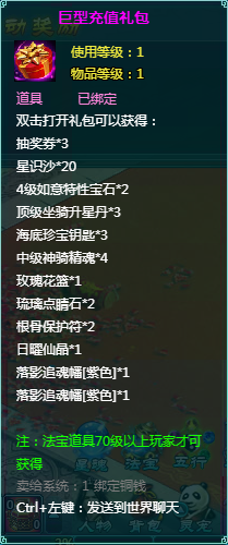 2、充值礼包中的法宝道具均为70级以上玩家才能获得。