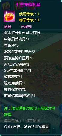 2、充值礼盒中的法宝道具均为70级以上玩家才能获得。