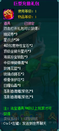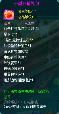 2、充值礼包中的法宝道具均为70级以上玩家才能获得。