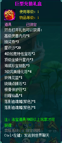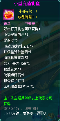2、充值礼盒中的法宝道具均为70级以上玩家才能获得。