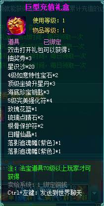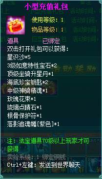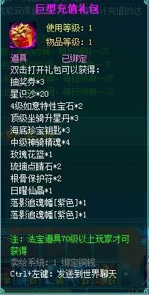 2、充值礼包中的法宝道具均为70级以上玩家才能获得。