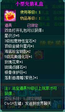 2、充值礼盒中的法宝道具均为70级以上玩家才能获得。
