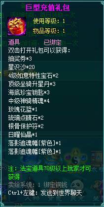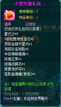 2、充值礼包中的法宝道具均为70级以上玩家才能获得。