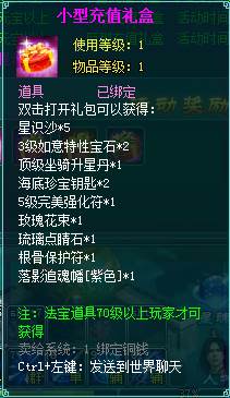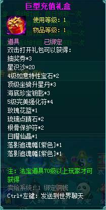2、充值礼盒中的法宝道具均为70级以上玩家才能获得。