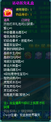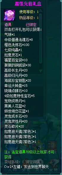 1、充值礼盒中的法宝道具均为70级以上玩家才能获得。