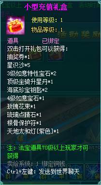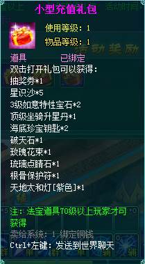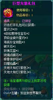 2、充值礼包中的法宝道具均为70级以上玩家才能获得。