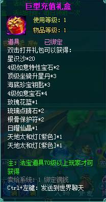 2、充值礼盒中的法宝道具均为70级以上玩家才能获得。