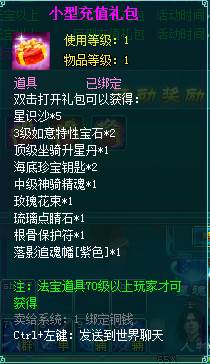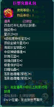 2、充值礼包中的法宝道具均为70级以上玩家才能获得。
