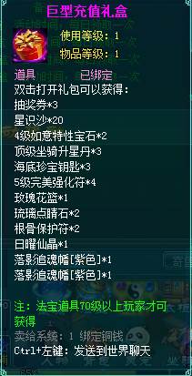 2、充值礼盒中的法宝道具均为70级以上玩家才能获得。