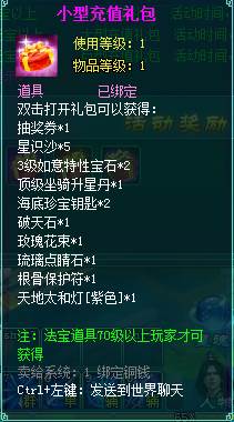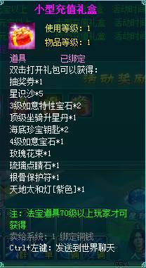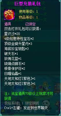 2、充值礼包中的法宝道具均为70级以上玩家才能获得。