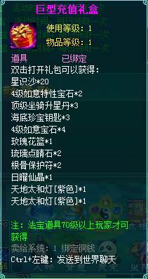 2、充值礼盒中的法宝道具均为70级以上玩家才能获得。