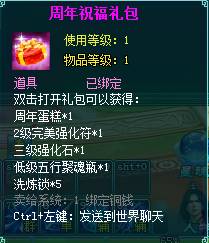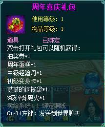 2、周年喜庆礼包中的物品均为绑定道具,不可交易。