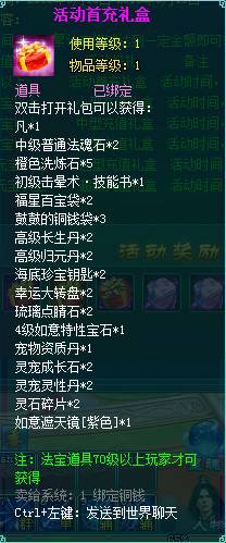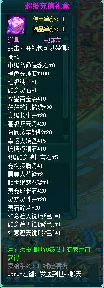 1、充值礼盒中的法宝道具均为70级以上玩家才能获得。