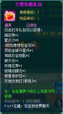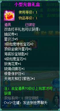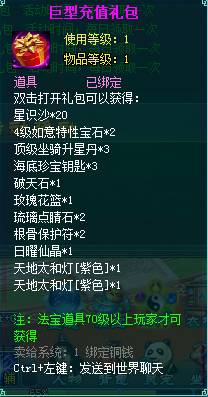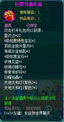 2、充值礼包中的法宝道具均为70级以上玩家才能获得。