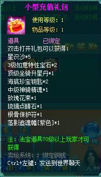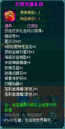 2、充值礼包中的法宝道具均为70级以上玩家才能获得。