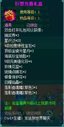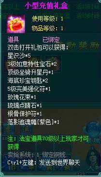 2、充值礼盒中的法宝道具均为70级以上玩家才能获得。