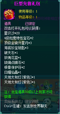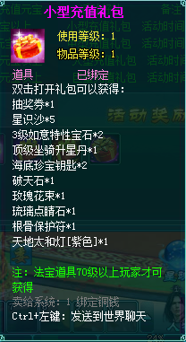 2、充值礼包中的法宝道具均为70级以上玩家才能获得。