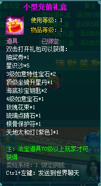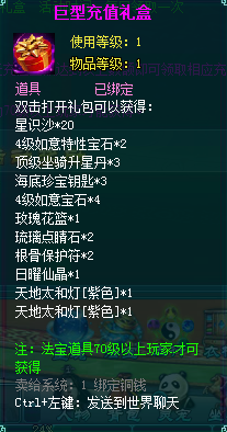 2、充值礼盒中的法宝道具均为70级以上玩家才能获得。