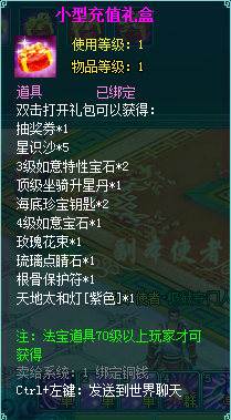 2、充值礼包中的法宝道具均为70级以上玩家才能获得。