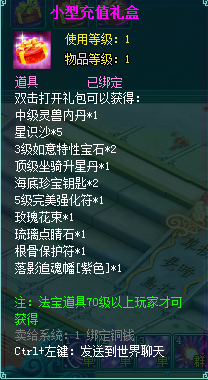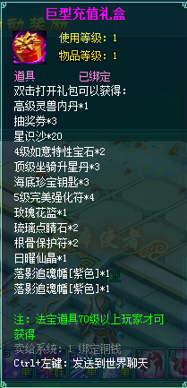 2、充值礼盒中的法宝道具均为70级以上玩家才能获得。