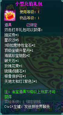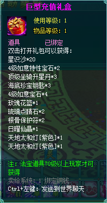2、充值礼盒中的法宝道具均为70级以上玩家才能获得。