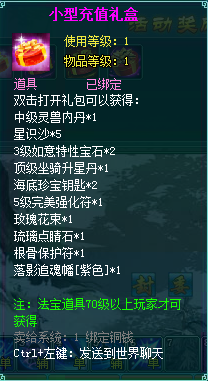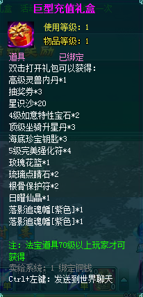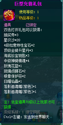 2、充值礼盒中的法宝道具均为70级以上玩家才能获得。