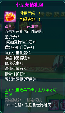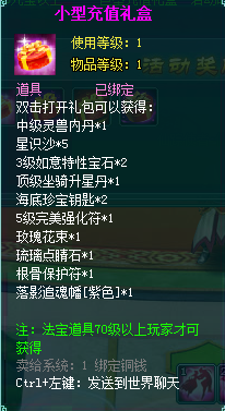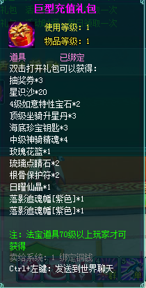 2、充值礼包中的法宝道具均为70级以上玩家才能获得。