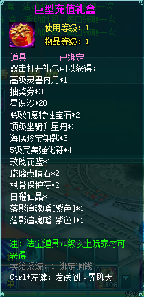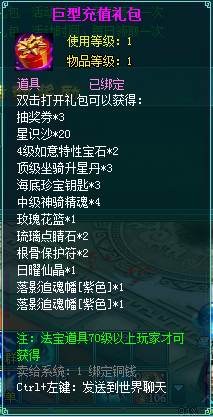 2、充值礼包中的法宝道具均为70级以上玩家才能获得。